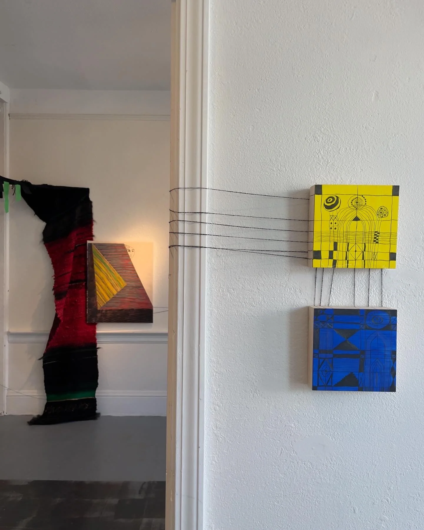 Sanaz’s pieces, whether in the medium of drawing, painting, or weaving, showcase an inquiry for the manifestation of a living network that carries and, at the same time, creates meaning. This “warp” permeates the inorganic solid lines of the architecture, saying that “its material is the matter” itself. Although Sanaz is creating with the lexicon and upon the foundations of architecture, her pieces consciously avoid the abstract understanding of architecture by scaping the rules of geometry and symmetry.